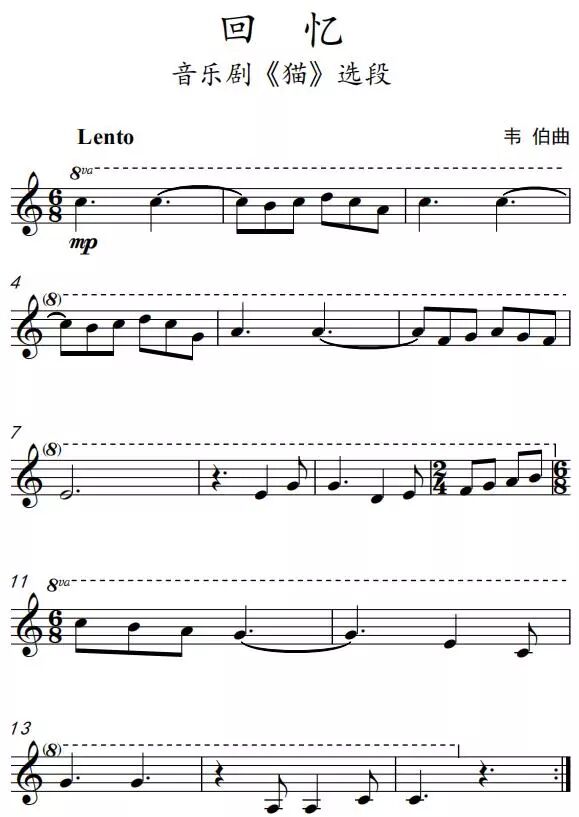 《Memory》,是音乐剧大家安德鲁·洛伊德·韦伯的名作《猫》中最著名的唱段。《猫》是韦伯根据诺贝尔文学奖得主T·S·艾略特的长诗《擅长装扮的老猫精》改编谱写的,讲述的是一个很简单的故事。杰里科猫族每年都要举行一次舞会,众猫们会在一年一度的盛大聚会上挑选一只猫升天。于是,形形色色的猫纷粉墨登场,使尽十八般武艺。最后,一只尝尽了人生五味,看透了世态炎凉,重归故里的猫格里泽贝拉以一曲《Memory(回忆)》打动了所有在场的猫,获得了升天资格。《Memory》之所以能为世界人民所喜爱,除了优美旋律和出色歌词之外,还在于它以一首歌诠释在外游子的心声,以及从音符间映射出来的宛若昨日的故乡光景。