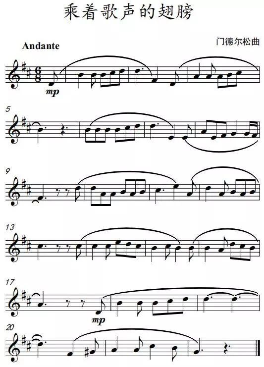 《乘着歌声的翅膀》为门德尔松在德国诗人海涅诗文基础上谱曲(Op. 34, No. 2)而成。这首歌被中日韩等多个国家收入中学教材,广为流传。
