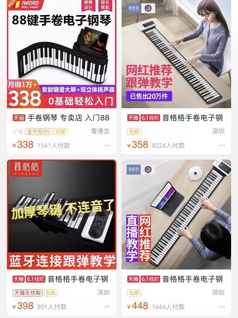 各类游戏,键盘APP 想学琴好歹认一下钢琴长啥样,这一看就不是钢琴啊……认为靠游戏APP能学琴的,我觉得TA的智商可能也就不适合学钢琴了。 那下面这种呢? 也是不行的啊亲! 界面是像了,但也不能让你了解钢琴的发音原理,无法学会正确的手指发力方式。 真正学习练习钢琴应用实体钢琴而非软件。软件中的钢琴音色、手感不同,而且根本无法进行技巧练习,软件钢琴学得再好,在现实中也无法弹奏真正的钢琴。 有很多人有一种错觉就是:“练好音游(音乐游戏),我就能学好钢琴。” 说真的,这个练得再好也只能是游戏厅小王子,跟会不会弹钢琴,没有半毛钱关系。 电子琴 它们确实不是相同的乐器。两者可以都学,相辅相成,也可以任选其一,但不代表我们应该产生歧视。 学它们永远都是有各自的价值的,关键是最终学的人领悟到什么。 那些说电子琴浪费时间的毫无道理,或许他们还以为电子琴只是是老年大学的项目。 而且学习电子琴不能说一点好处没有。弹奏旋律用的电子琴键盘黑白健之间的音程关系,与钢琴是一致的。 就是说,能在电子琴上弹出一支曲调的人,也可以大致在钢琴上弹奏出来。 如果使用的是五线谱,在熟悉谱表上也有些好处。 不过,从根本上说,电子琴的弹法与钢琴技巧、技术的性质是相当不同的: 首先,是对触键方法的要求不同。 电子琴的发音是无论用什么方法、方式和感觉,只要能按下键盘,都会发出同样力度、同样音色的音来。 而钢琴,则是有控制的触键方法。所谓控制,也就是控制触键那一瞬间的感觉和选择所用的方法,因为这直接关系着发出一个什么“色调”、什么“味道”的声音来。 而“色调”和“味道” 又曲曲有别,这就是要求触键也能曲曲互异,经验告诉我们,凡先学电子琴的学生在改学钢琴时,几乎都要改进或重新学习触键方法,就是这个原因。 假如有几个同时弹奏的声音(双音、和弦等纵向的声音结合),我们无法使其中的哪个音更突出一些,使其他的音弱下来。 假如是旋律、华彩、过门以及所有横向进行与展开的音的连续,电子琴无法奏出渐强,渐弱,突强、突弱等力度的变化与对比。 以上这些电子琴不能的,不但是钢琴可能的,而且是钢琴之为钢琴的典型性艺术性能。 几乎只是按动开头一样,但钢琴,却要求右手能做到的一切,左手也都能做到。所以,钢琴可以完美的弹奏复调音乐,在电子琴上却很难做到。 但若为学钢琴而先学电子琴,看起来还是弊多利少。一个有志学钢琴的人,还是尽早购置钢琴为好。 只不过如果你的目的是想学钢琴,用电子琴替代是行不通的。 手卷钢琴 价格方面是真便宜!咱们学钢琴虽然条件有限,作为业余爱好来说要求也是可以放低一点的。 但是也不用这么低吧? 我在个人情感上只把手卷钢琴看作是一种玩具。 手卷钢琴按键没有钢琴的机械手感,没有力度反应,手感非常像在一张薄薄的软泡沫上弹琴。 它是软的,虽然短期内你可以用你记忆里钢琴的触键感觉去弹,但是长时间不接触钢琴琴键确实会有影响,甚至会起到反作用。 使用指法谱 如果说买电子琴、手卷钢琴属于无奈之举,在了解它们的特点的情况下使用,还算是可以接受。 那么用指法谱学钢琴的,就真的是纯粹的耍流氓了! 用指法谱、或者各种奇奇怪怪的谱子,无非就是想投机取巧,走捷径。 由于目前世界通用的记谱方式是五线谱,绝大部分的曲目都没有指法谱可弹,其中肯定包括很多你喜欢的曲目。 另外,学简谱也有相当的局限性,初学者如果采取简谱入门,一般只能弹C调,其他调会很困难;再有,钢琴是和声乐器,大量用和声,如果看简谱一排数字摞起来,是比五线谱费劲得多的。 学钢琴不学五线谱,就好像学中文不学认字一样。不认字也能说话,但还是属于文盲~