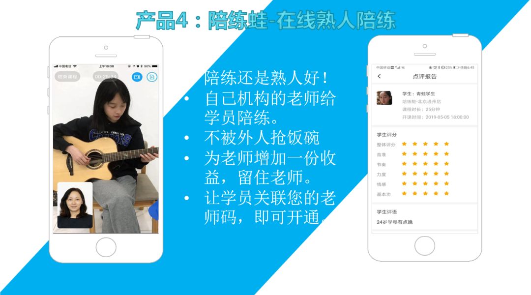 家长再有时间和精力,也无法代替专业老师的指点。也许在孩子刚开始的启蒙阶段,家长可以起到一定监督、引导作用。一旦孩子水平突飞猛进,家长会很难把控尺度与教学内容方面的专业性,这时可以考虑用一些真人在线陪练软件来解决问题。对于孩子来说,最好的陪练方式莫过于自己最熟悉的任课老师,无论是沟通、还是内容进度,对接起来更会加高效和专注,进步更快